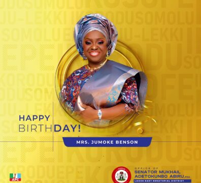 On behalf of my family and the good people of Lagos East Senatorial district, I heartily congratulate Mrs Jumoke Benson,