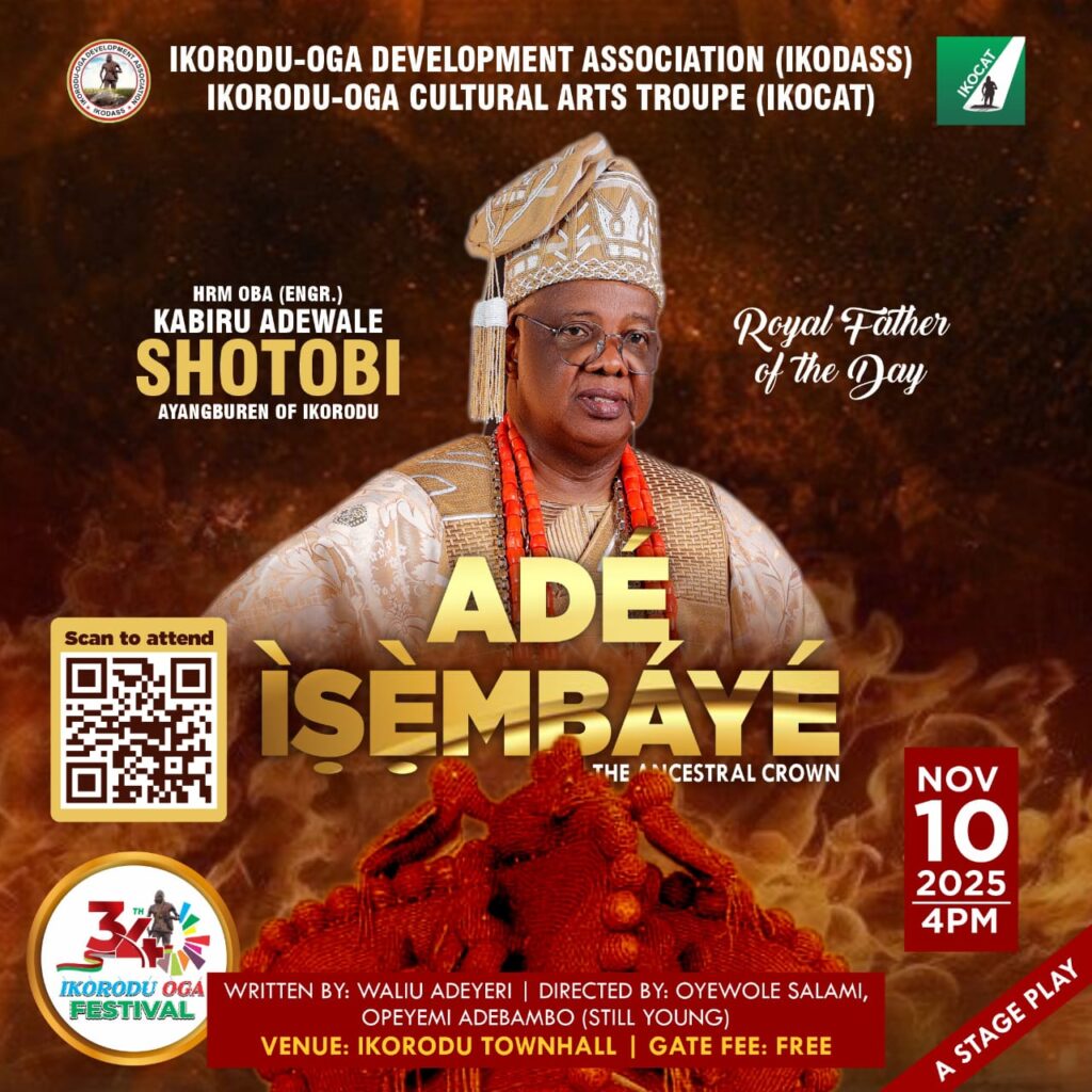 The theatrical production which will hold on Monday, November 10, 2025, at Ikorodu Townhall, by 4:00 p.m. It is one of the activities scheduled for the 34th Ikorodu Oga Festival.