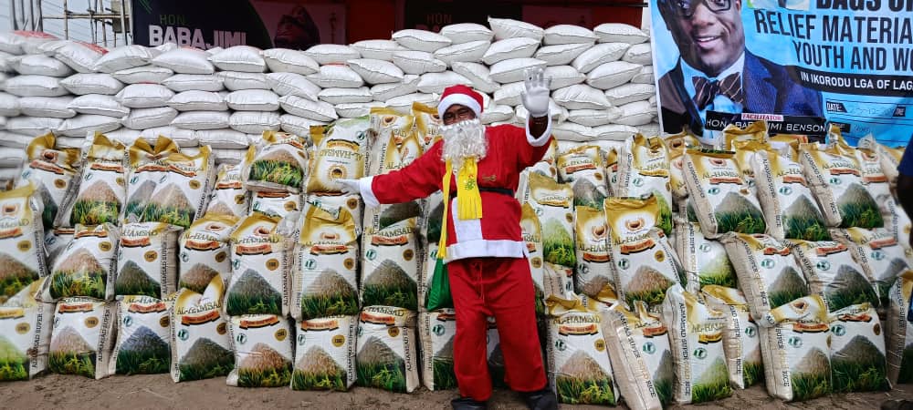 CHRISTMAS CELEBRATION: REP BENSON DISTRIBUTES PRES TINUBU’S ‘RENEWED HOPE’ RICE TO OVER 2,500 RESIDENTS ACROSS IKORODU FEDERAL CONSTITUENCY