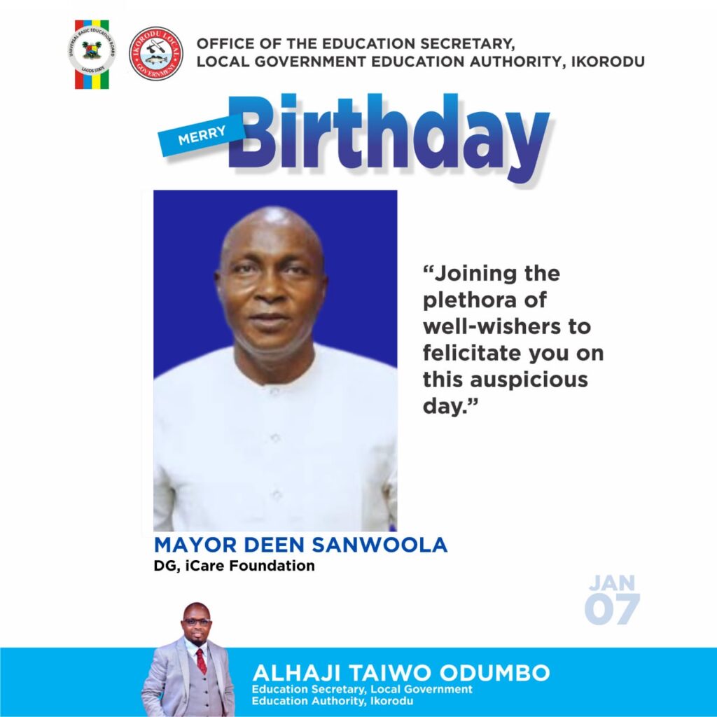 The Ikorodu Local Government Education Secretary and a prominent member of the iCare Foundation has extended a heartfelt felicitations to the Director-General of iCare Foundation, Mayor Deen Sanwoola on his birthday today.