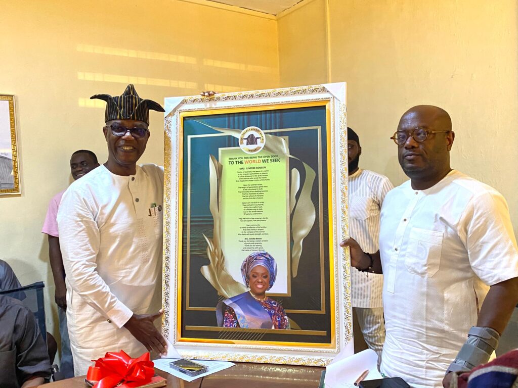 Similarly, Banjo also presented another frame to the wife of the Rep Member, Mrs. Jumoke Benson, in recognition of her contributions and support for her husband’s numerous strides as Ikorodu Federal Representative.