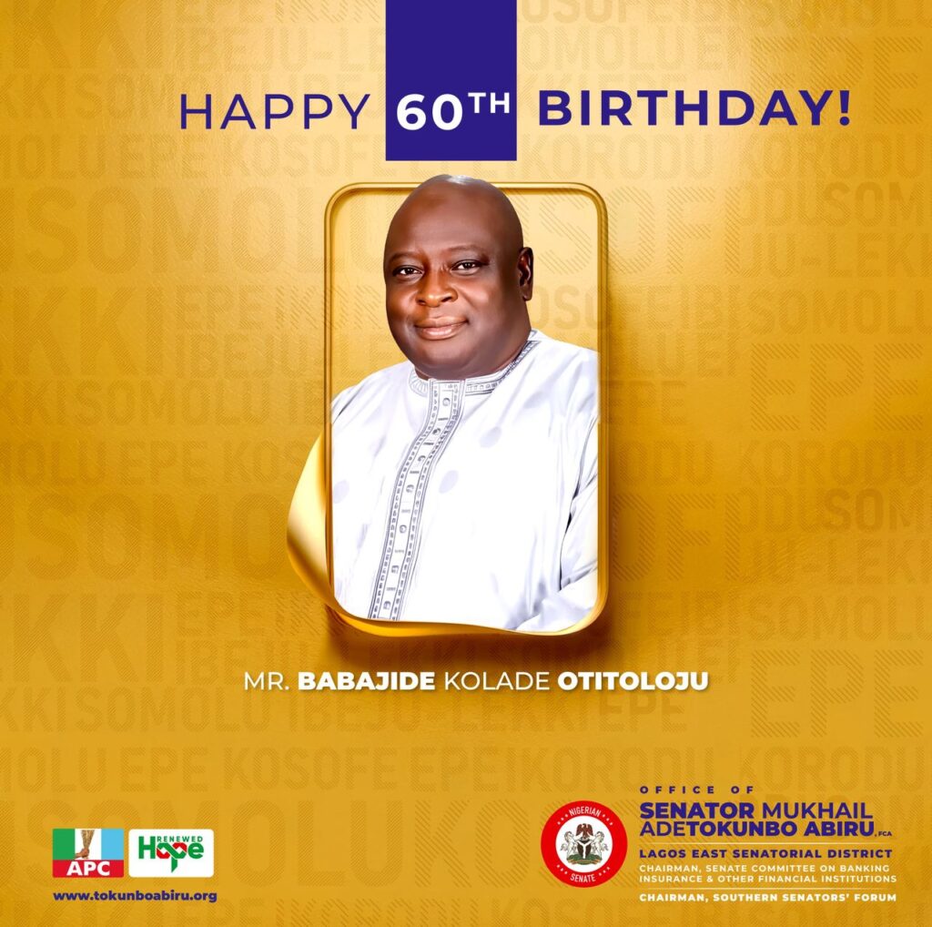 On behalf of the good people of Lagos East Senatorial district, I extend warmest congratulations to an accomplished journalist and a great intellectual, Mr. Babajide Kolade-Otitoju, on the occasion of his 60th birthday.