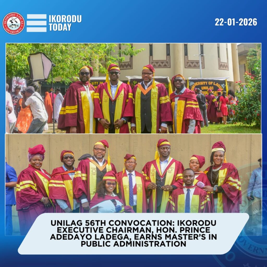 The Executive Chairman of Ikorodu Local Government, Hon. Prince Adedayo Ladega, has bagged a Master’s in Public Administration (MPA) at the 56th Convocation Ceremony of the University of Lagos (UNILAG), held at the Akoka campus.
